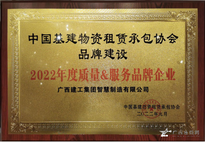 廣西建工集團(tuán)智慧制造有限公司榮獲“2022年度質(zhì)量服務(wù)品牌企業(yè)”,公司董事長(zhǎng)、黨總支書(shū)記李日紅榮獲“2022 年全國(guó)基建物資租賃承包行業(yè)杰出創(chuàng)新人才”稱(chēng)號(hào)。